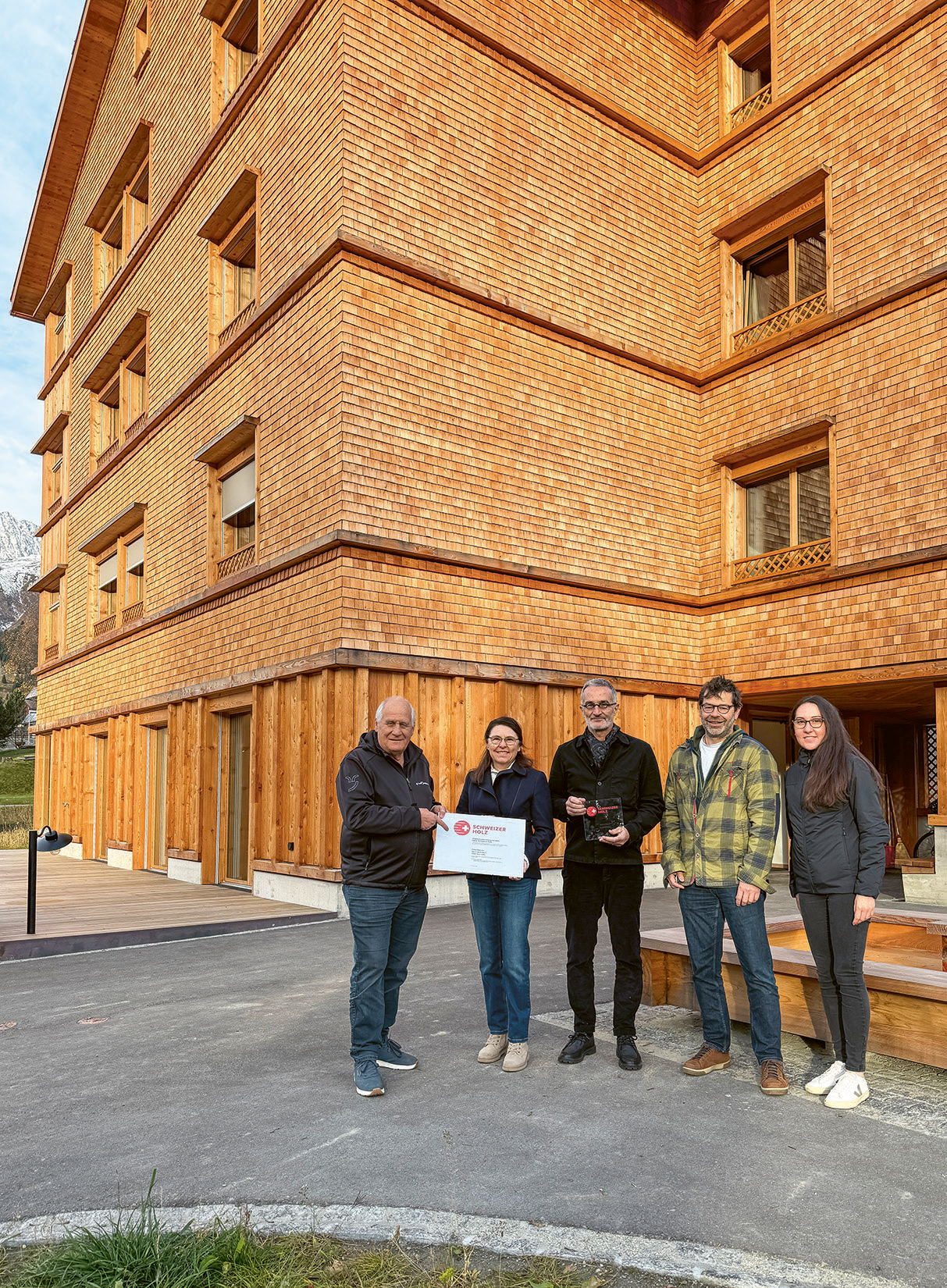 Übergabe Zertifikat Schweizer Holz, 7. November 2025. (Bild: Graubünden Holz)